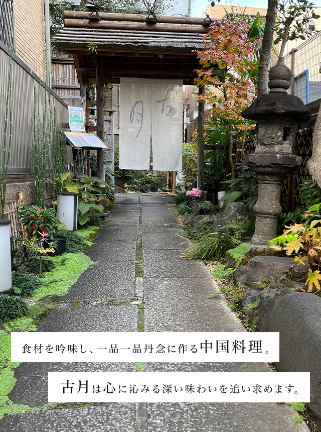 中国料理 古月 池之端本店では、魚河岸で仕入れた新鮮な魚介と季節のお野菜を、「栄養薬膳大師」の資格を持つベテラン料理長が丹精込めて、毎月のコース料理に仕上げます。